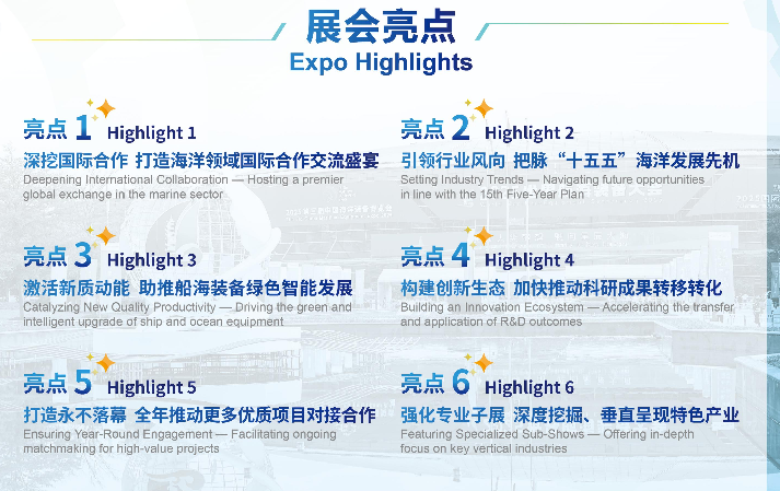 本届展会设五大主题子展、十一大专业展区,涵盖船艇设备、海上能源、无人系统等领域,将开展 30 余场专业论坛与商贸对接活动。上届展会吸引 812 家展商、19 万人次参观,是海洋装备产业产学研合作、经贸对接的核心平台。